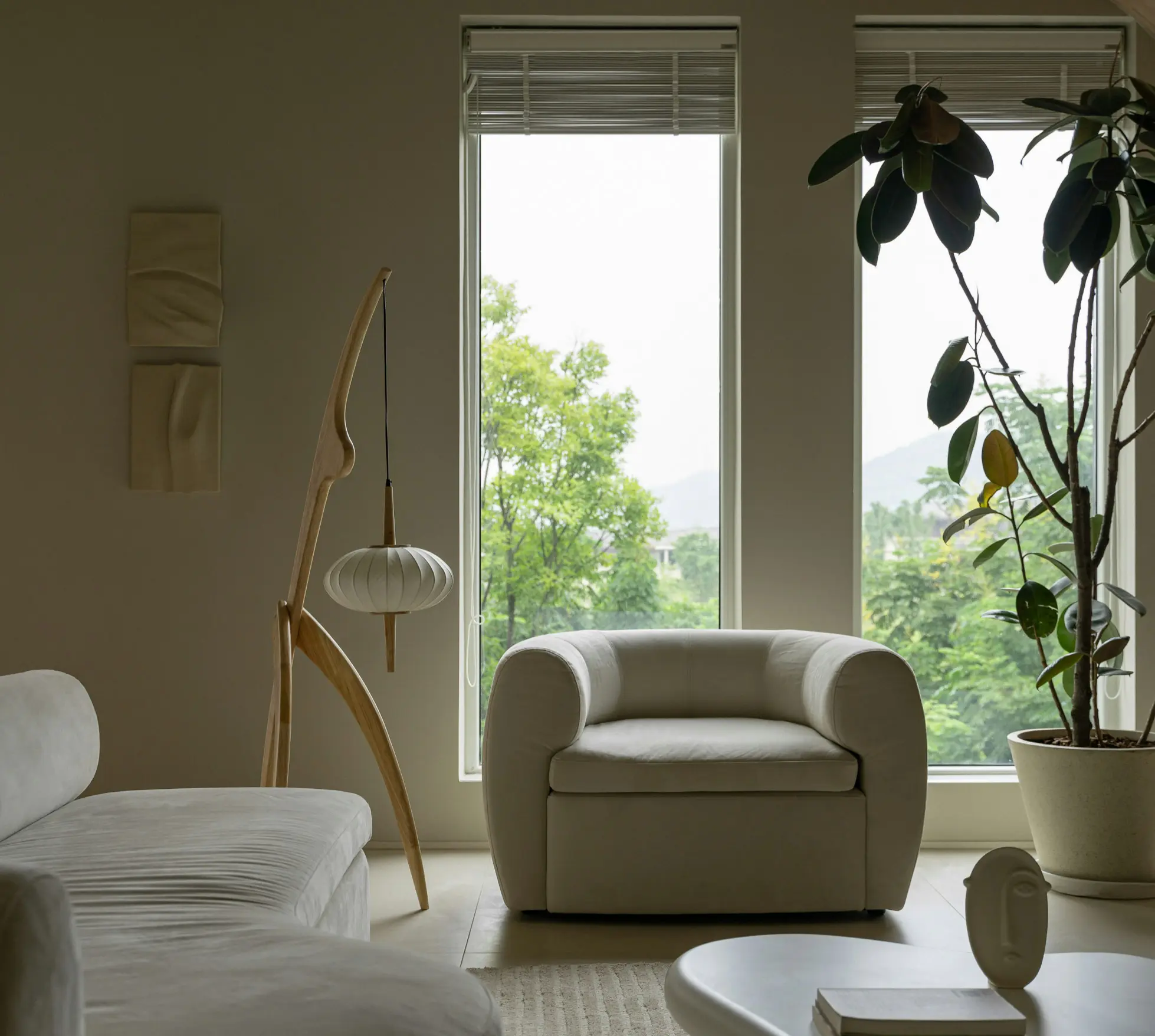 Natural textures, such as wood, stone, and woven materials, combined with rich, deep blue tones, create a harmonious flow that seamlessly connects the various spaces throughout the home. This thoughtful combination not only enhances visual continuity but also evokes a sense of calm and cohesion, making each room feel like an intentional extension of the next.