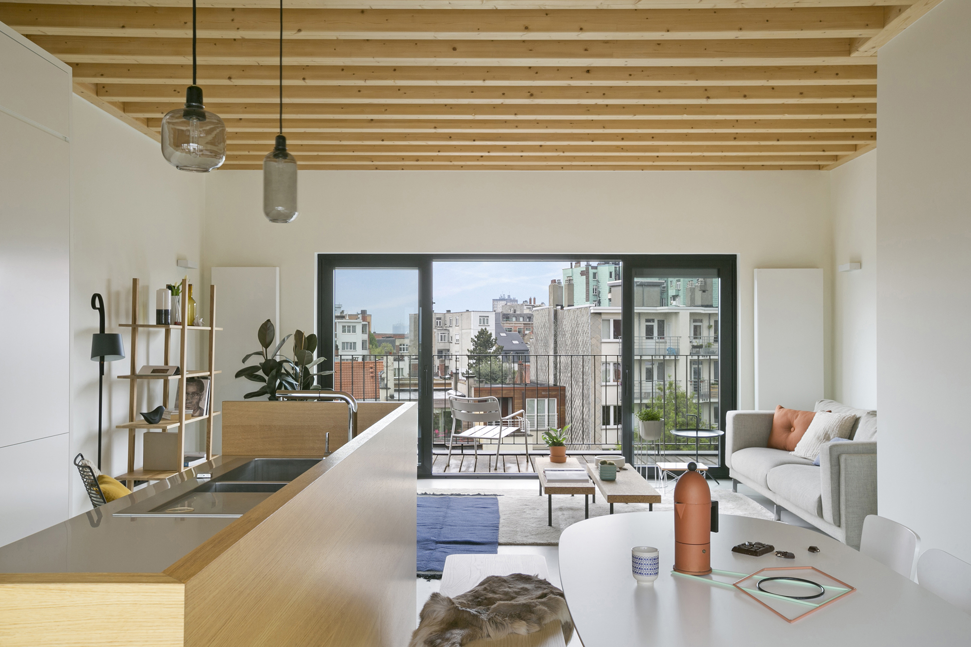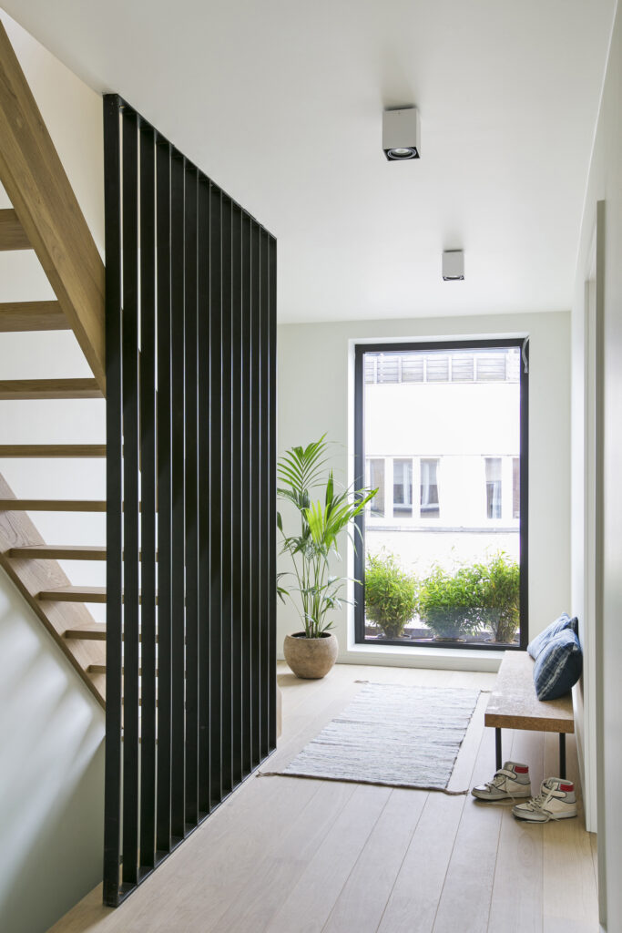 Un duplex lumineux vient compléter l’immeuble, avec terrasses et vues sur les toits de Bruxelles.